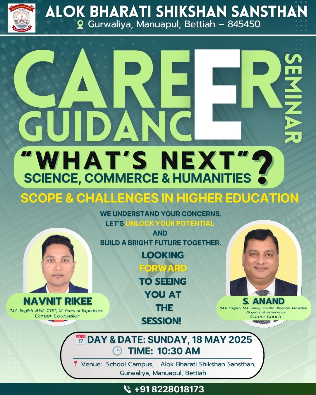 Admissions open for class 11th for limited seats (Science, Commerce, Humanities). For more details contact us on 8228018173.